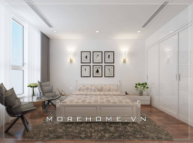 Lựa chọn giường ngủ màu trắng kết hợp với nội thất phòng ngủ mang lại không gian nghỉ ngơi đầy thanh nhã, tinh tế mà dễ chịu